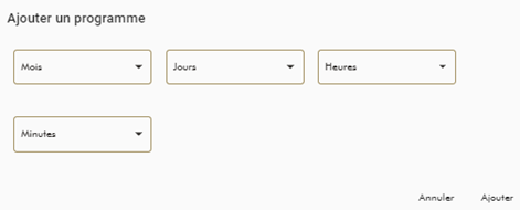 Dans le cas où le superviseur souhaite créer une tâche récurrente (case Tâche récurrente cochée), il sera invité à ajouter un programme / planification de la tâche, en choisissant les paramètres suivants : mois de l’année, jours de la semaine, heures et minutes.