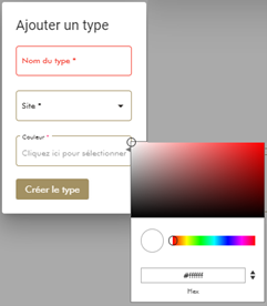 Type de l’événement. Le type de l’événement peut être choisi parmi une liste déroulante si elle est disponible. Il est toutefois possible de créer un nouveau type d’événement, en cliquant sur le bouton Ajouter un type. Les informations suivantes sont requises :