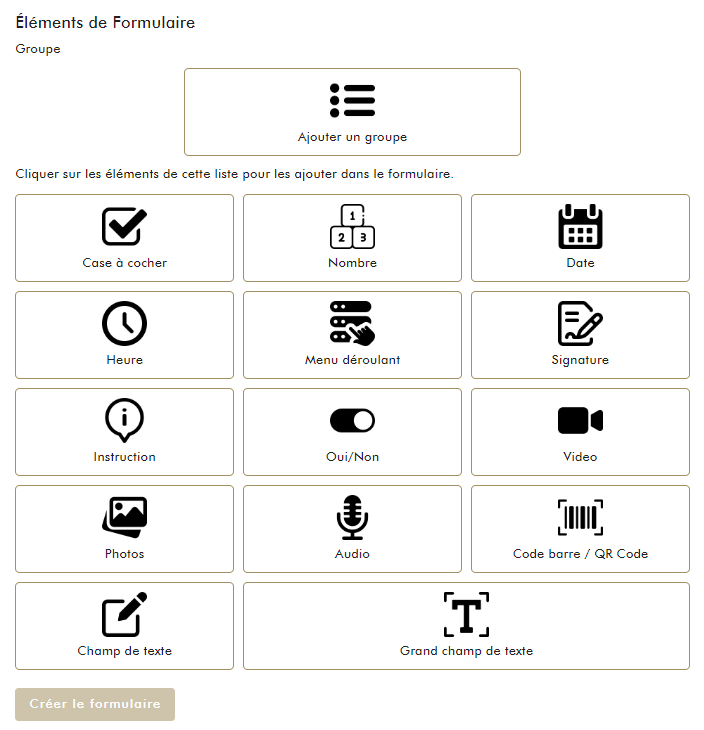 Le superviseur a la possibilité de choisir qu’un élément soit obligatoire pour valider le formulaire, en cochant la case Elément obligatoire.
