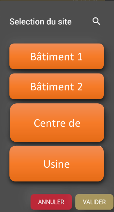 Dans le cas où un agent de sécurité doit se déplacer entre plusieurs sites (appartenant au même client : différents bâtiments, différents moyens de transport …) dans le cadre d’une même vacation, et pour garder une traçabilité de ses déplacements, il doit activer la fonction Changer de Site. Il sera ainsi amené à sélectionner le site dans lequel il se trouve parmi la liste de tous les sites qui lui sont assignés.