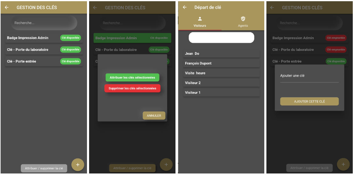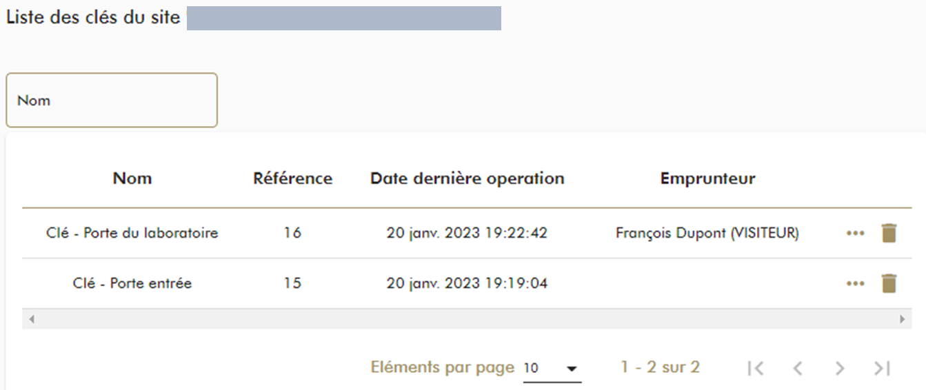 La fonction Gestion de clés permet de visualiser toutes les clés du site client, et de pouvoir les assigner à un agent de sécurité ou à un visiteur et de retourner la clé.
