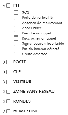Exemple : en cochant la case PTI, tous les indicateurs PTI seront sélectionnés. Il est toutefois possible de cocher uniquement la case d’un ou plusieurs indicateurs PTI :