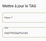 Pour les pointeaux NFC, la même interface de modification est proposée, intégrant en plus la possibilité de modifier le tag NFC.