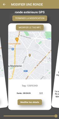 La tâche de création des rondes est confiée aux superviseurs de site qui, en étroite collaboration avec le client et afin de répondre au mieux à ses attentes, définissent les points de passage obligatoires des agents pendant leur parcours. Il est important que la création d’une ronde s’effectue dans les mêmes conditions que son exécution par les agents de sécurité. Ainsi, les intervalles de temps entre les pointeaux NFC ou GPS qui sont enregistrés automatiquement au moment de la création des rondes peuvent être réalistes ; les retards éventuels de lecture de pointeaux au moment de l’exécution des rondes seront par conséquent crédibles.