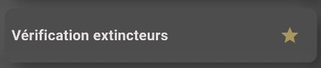 De la même manière, le formulaire favori est sélectionné via la liste des formulaires accessible via le bouton Main Courante, en appuyant sur l'étoile en haut à droite de la case du formulaire. Le changement de favoris se fait en réitérant la sélection.