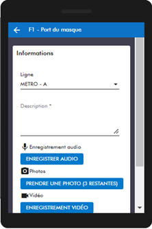 Le formulaire d’un événement comprend différents champs obligatoires ou optionnels (description, enregistrement vidéo, choix multiple, signature ...). En cliquant sur le bouton Envoyer le Formulaire, l’événement est alors transmis instantanément sur le journal des événements, consultable directement sur l’application MCE, ainsi que sur le Dashboard.